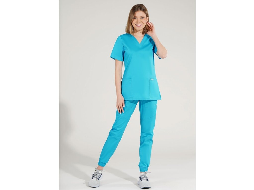 Halena FLEX ZONE kombinuje pohodlný materiál, praktický design a pestrou škálu barev, čímž splňuje náročné požadavky zdravotnického prostředí. Ideální pro profesionály, kteří hledají odolné, snadno udržovatelné a stylové pracovní oblečení.