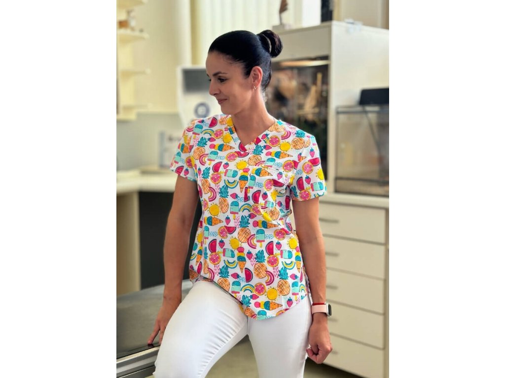 Zdravotnická halena LETNÍ KOKTEJL Pohodlí, letní motiv, kvalitní materiál, svěží vzhled