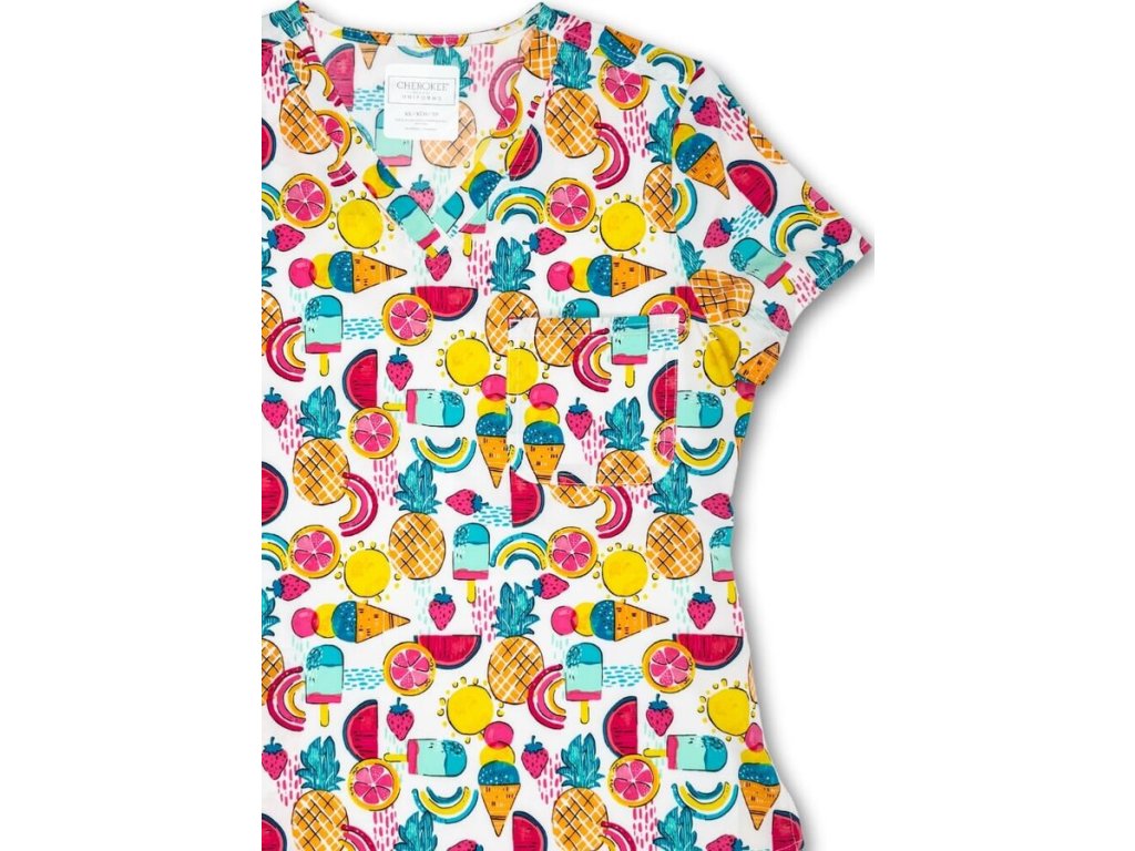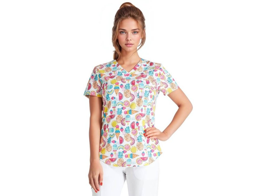 Dodání 4-5 pracovních dnů. Dámská zdravotnická halena zn. Cherokee s potiskem LETNÍ KOKTEJL potěší všechny zdravotnice. Oceníte slušivý střih, náprsní kapsu, vzdušný elastický materiál, který je příjemný a pohodlný.