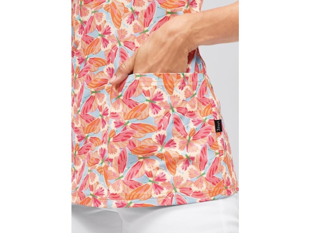 - Stylový design: Neutrální potisk motýlků přidává k celkovému vzhledu halenky, což působí příjemně a přívětivě na pacienty, zejména v prostředích jako jsou dětské ordinace nebo kliniky.