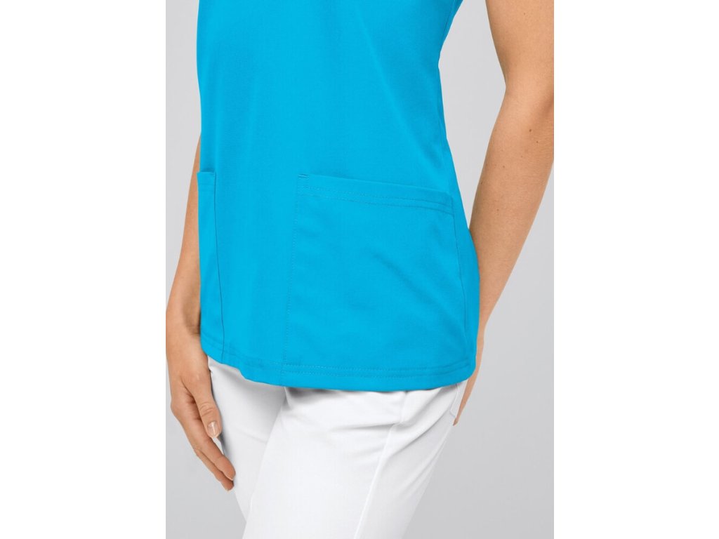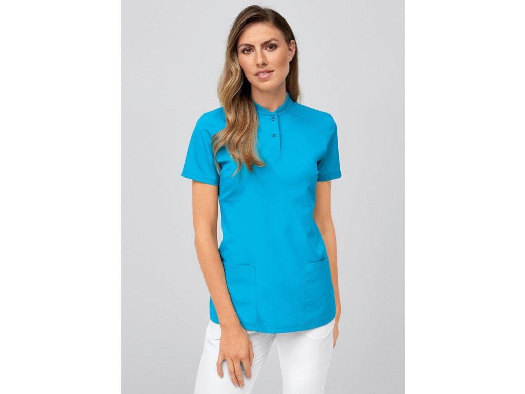 Tato zdravotnická halena je ideální pro všechny zdravotnice, které hledají nejen styl, ale také pohodlí a praktičnost. Precizně zpracovaný pletený límeček s dvěma knoflíky odlišuje halenu od klasických modelů. Našité přední kapsy a zadní švy vytvářejí slušivou siluetu. Sedlový šev na ramenou přináší několik výhod – zlepšuje pohodlí, lépe kopíruje tvar ramen a poskytuje větší volnost pohybu, což je klíčové pro práci s pacienty.