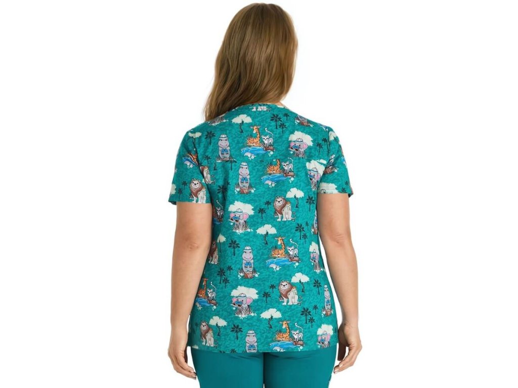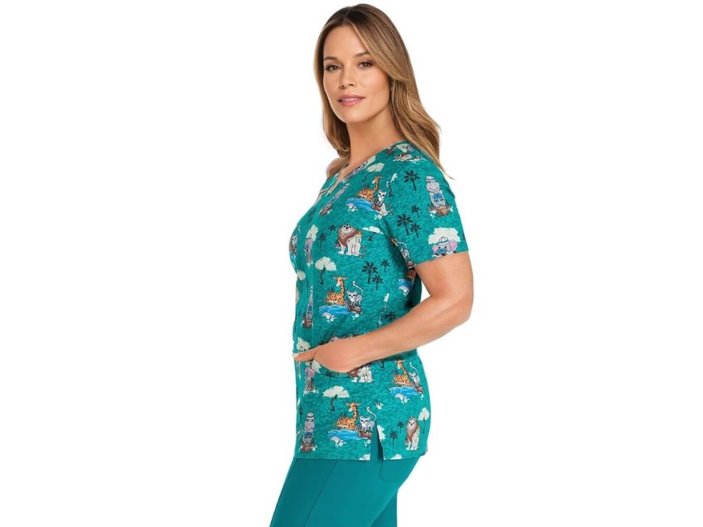 Dámská zdravotnická halena SAFARI s potiskem se rychle stane vaší oblíbenou pracovní uniformou. Tento model je ideální pro zdravotníky, kteří hledají kombinaci pohodlí, funkčnosti a stylu. Halena je vyrobena z kvalitního materiálu, který se skládá z 97 % bavlny a 3 % elastanu, což jí poskytuje výbornou prodyšnost a dostatečnou elasticitu pro komfort během celodenního nošení.