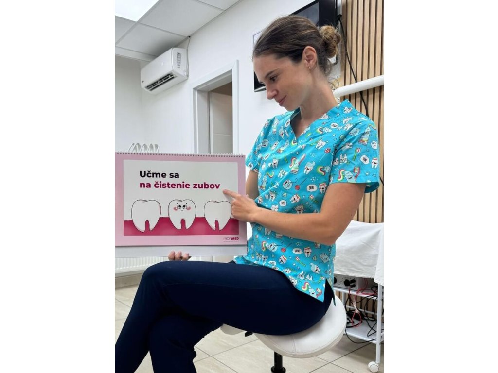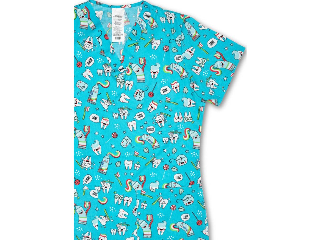 - Stylový design: Halena s veselým potiskem zoubků je skvělá pro prostředí, kde se pracuje s dětmi nebo seniorními pacienty.