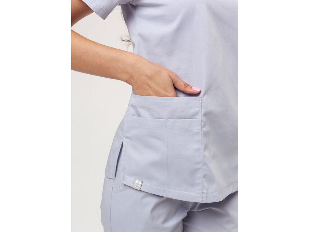 Klasika převlečená do moderního stylu. Oblečte pohodlnou zdravotnickou halenu s výstřihem do V. Dámská lékařská halena od značky SUNRISE nabízí mírně projmutý střih, krátké rukávy a boční rozparky, které umožňují volný pohyb při manipulaci s pacienty nebo při oblékání / svlékání. Mírně zaoblený lem dodá na eleganci, zatímco multifunkční kapsy s speciální kapsou na telefon vám usnadní každodenní práci.