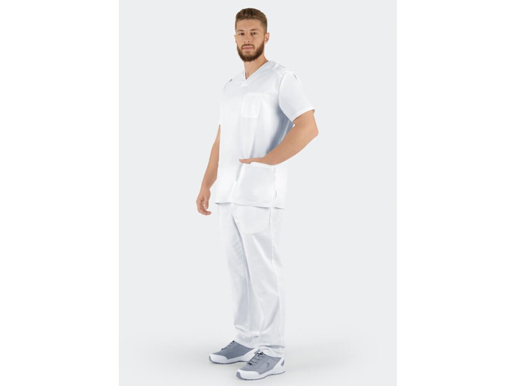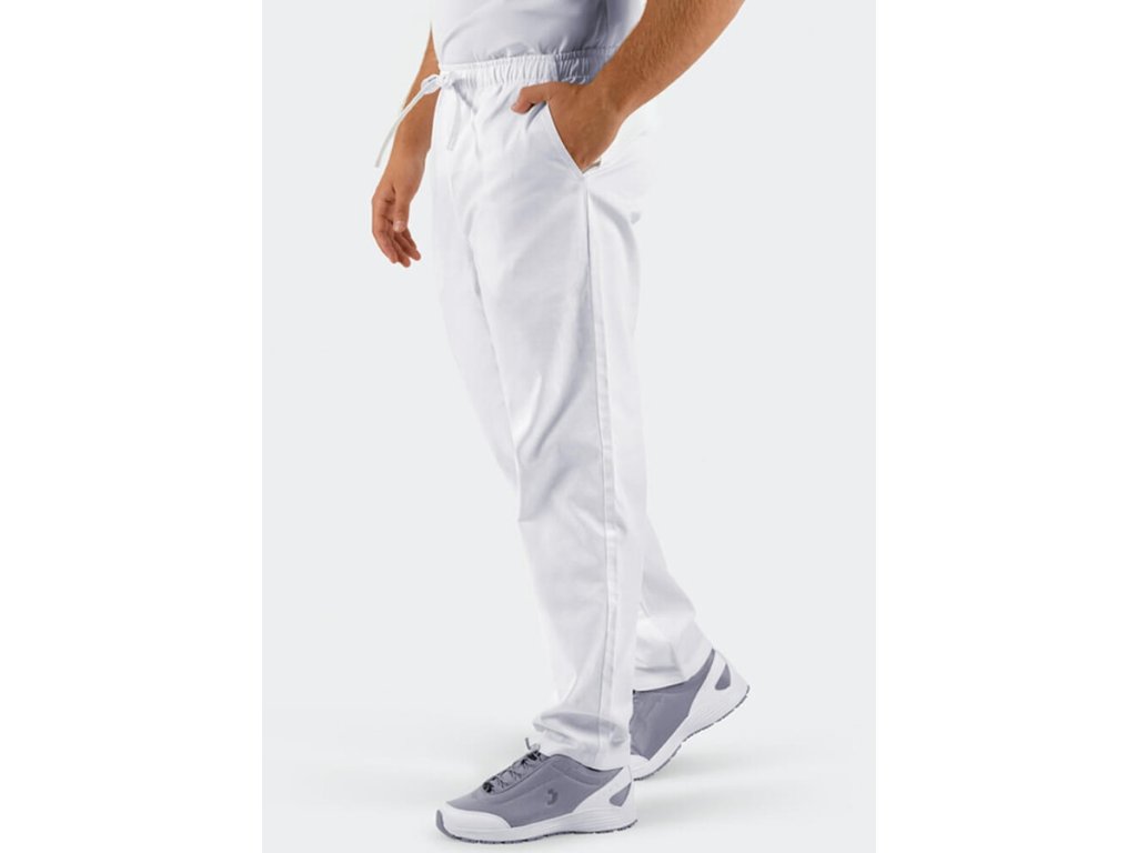 Zdravotnické kalhoty MOREN 100% bavlna – bílé Prodyšné, pohodlné, klasický střih