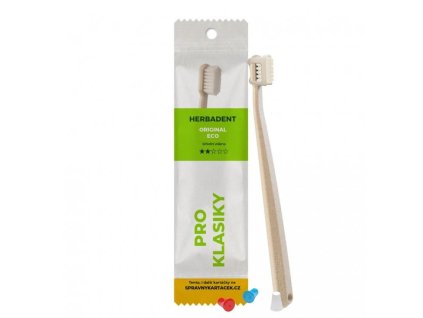 HERBADENT ORIGINAL zubní kartáčky s ultrajemnými vlákny šetrně, ale účinně odstraňují zubní plak a chrání citlivé dásně. Jsou vyrobeny z ekologického materiálu z rostlinné slámy s minimální uhlíkovou stopou.